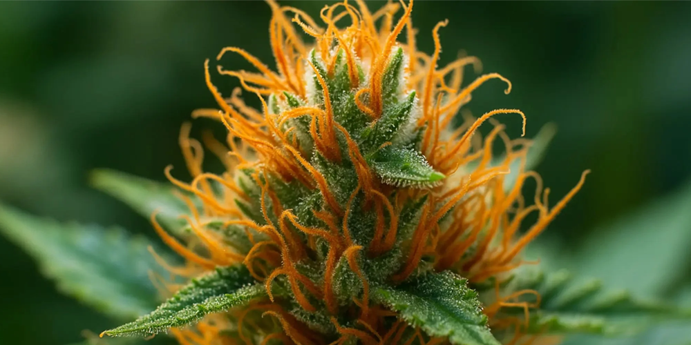 Weed with orange hairs—often called “orange pistils”—is simply cannabis where the flower’s tiny hair-like structures have turned a bright orange, red, or amber color. These hairs are pistils, part of the female plant’s reproductive system. They start out white, and as the plant matures, they darken into yellow, orange, or brown.