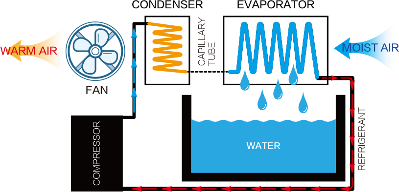 The mechanics behind a refrigerant-style dehumidifier are actually simpleNotice how moisture forms